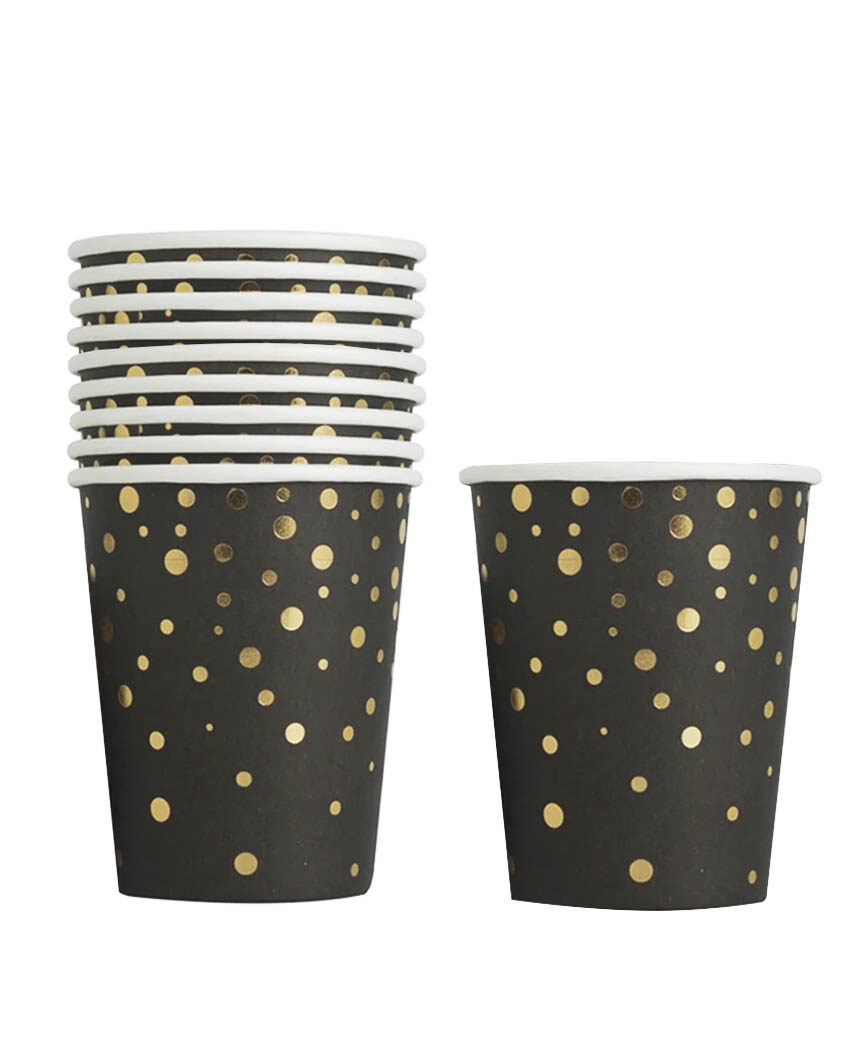 Стаканчики паперові “Чорні з золотим горошком #06” 10 шт.