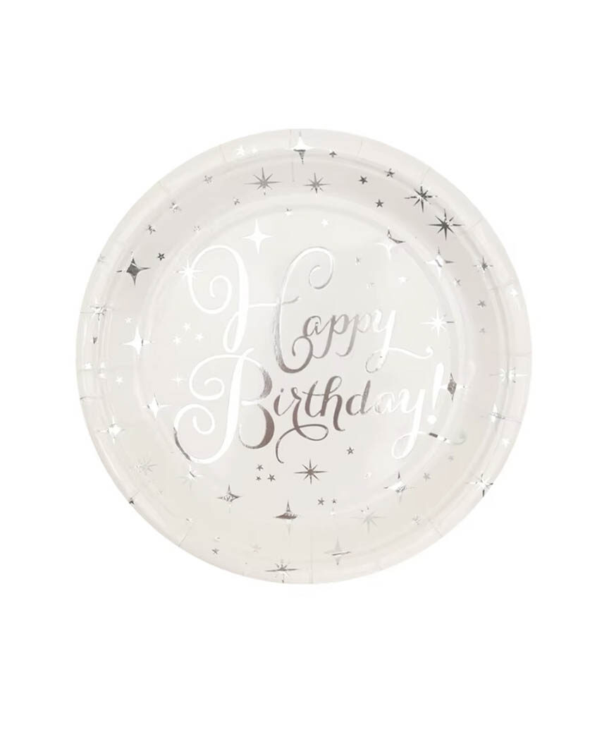 Тарілки паперові 18cm “Happy Birthday білі з срібн зірочками #26” 10 шт.