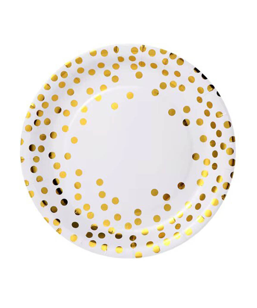Тарілки паперові 23cm “Білі з золотим горошком #05” 10шт TM Pelican